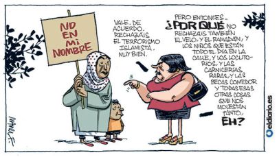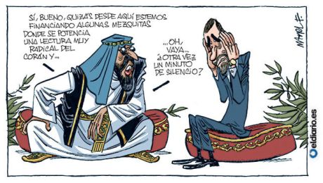Nuestra monarquía y gobierno se presentan compungidos ante la tragedia, pero callan y tienen parte de culpa. Igual que para muchos patriotas hay víctimas de 1º y 2ª, también hay dictaduras de 1ª y 2ª, lxs que os indignáis contra el Islam, también calláis: