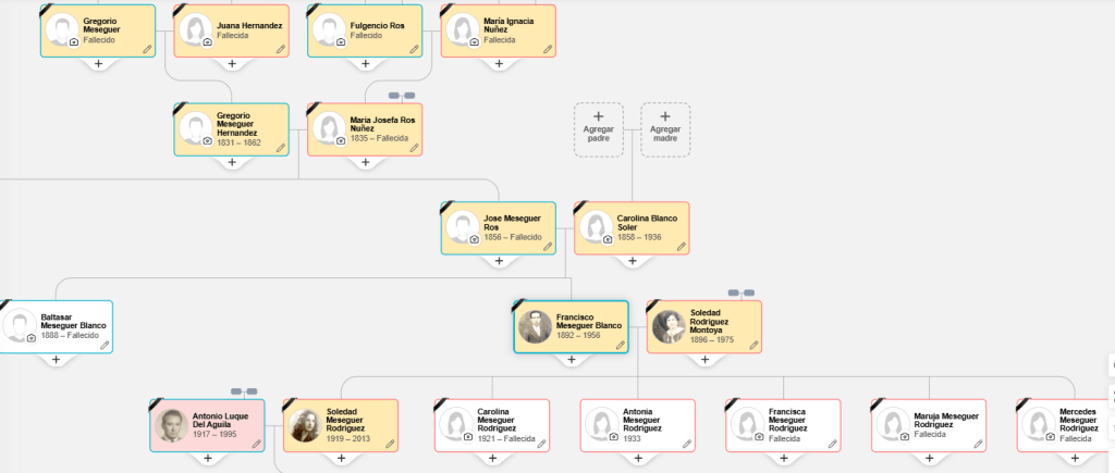 *ACTUALIZACIÓN 24 DE DICIEMBRE 2024: La tía Antonia, una oportunidad para preguntarle a la única tía abuela que me queda (91 años tiene), la mujer, allí en Cartagena me dio algunas pistas de sus padres que me han permitido actualizar y descubrir más cosas, ahí van: Francisco Meseguer Blanco y Soledad Rodríguez Montoya, bisabuelos por parte de abuela materna, ambos de Cartagena, él dependiente, ella costurera. De ahí he conseguido llegar hasta José Meseguer Ros y Carolina Blanco Soler (tatarabuelos maternos, carpintero y ama de casa) y otras dos generaciones de ancestros directos: Gregorio Meseguer Hernández -María Josefa Ros Núñez y Gregorio Meseguer y Josefa Hernández (6ª generación).